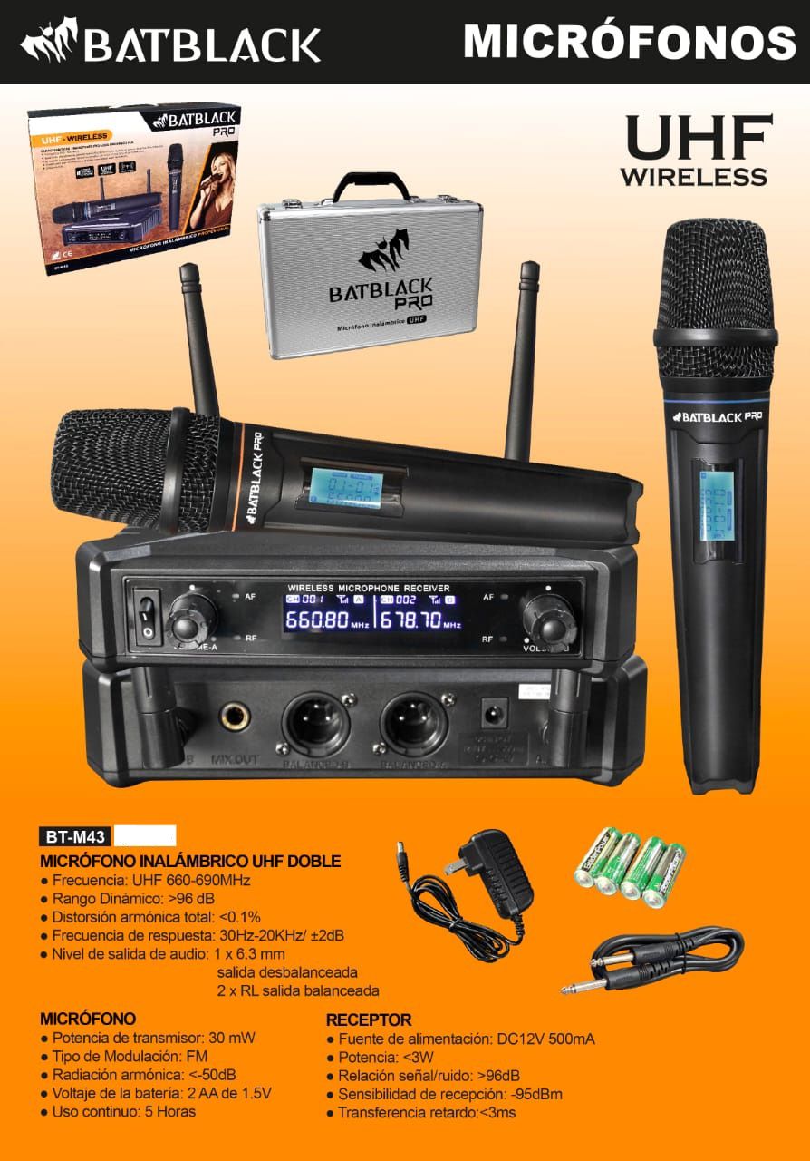 Microfono PRO BATBLACK Inalambrico UHF