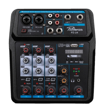 Mezcladora POTTENZA 4 canales c/interfaz