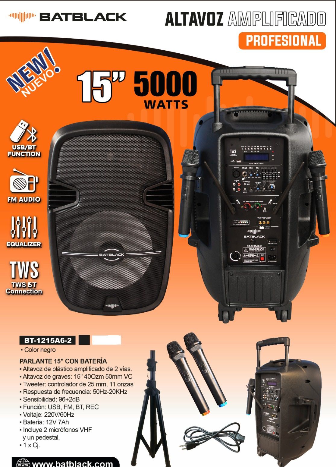 PARLANTE AMPLIFICADO 15″ 5000W BATBLACK